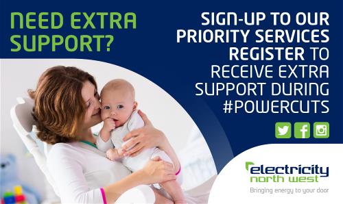 Electricity North West has launched a winter newsletter about the benefits of being a priority customer and is encouraging priority service customers to update their details. The newsletter includes preparing for winter advice, energy saving tips and the benefits of being on the Priority Service Register. Click here for more information.